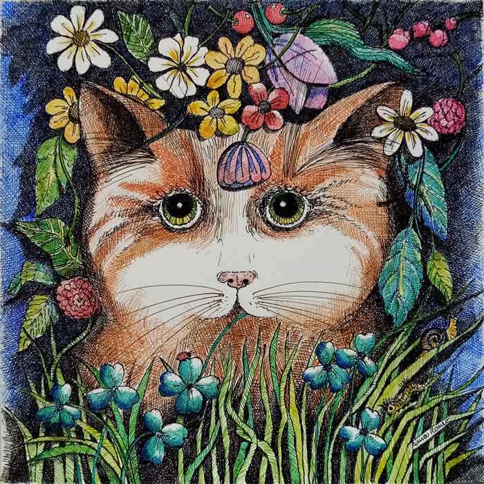 Solo formati 20x20 | "Figlio dei fiori" - chine colorate |